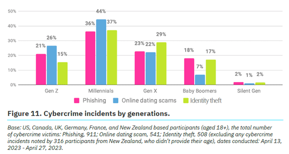 Which generation reported the most cybercrime incidents? Millennials. In fact, Baby Boomers and the Silent Generation reported the fewest.