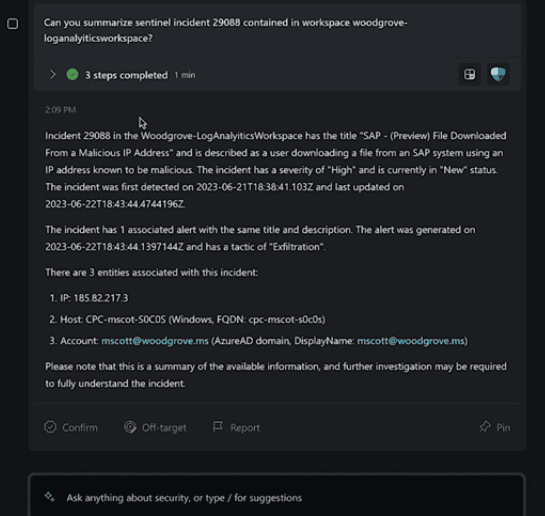It works with other Microsoft security products as well. A big benefit is that it integrates with natural language. This means you can ask questions plainly to generate tailored guidance and insights.